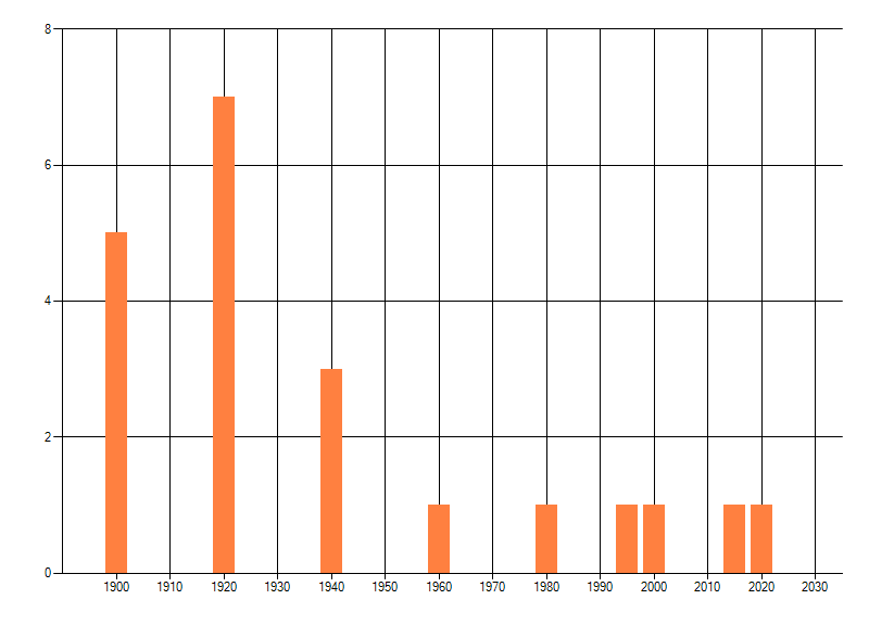 Het aantal atlasblokken (5x5 km) waarin de soort is gemeld binnen een periode van vijf jaar (vanaf 1980) of twintig jaar. Niet gecorrigeerd voor waarnemersinspanning en het aantal doorgegeven waarnemingen kan sterk variëren per periode, dus een trend in verspreiding kan hier niet direct uit worden afgelezen. Het opgegeven jaartal is het eerste jaar van de periode. Bron: gevalideerde waarnemingen uit de NDFF.