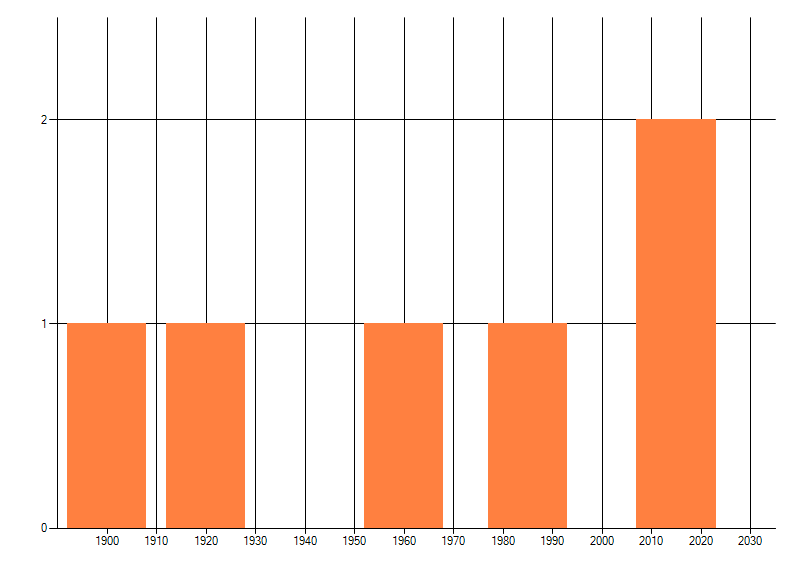Het aantal atlasblokken (5x5 km) waarin de soort is gemeld binnen een periode van vijf jaar (vanaf 1980) of twintig jaar. Niet gecorrigeerd voor waarnemersinspanning en het aantal doorgegeven waarnemingen kan sterk variëren per periode, dus een trend in verspreiding kan hier niet direct uit worden afgelezen. Het opgegeven jaartal is het eerste jaar van de periode. Bron: gevalideerde waarnemingen uit de NDFF.