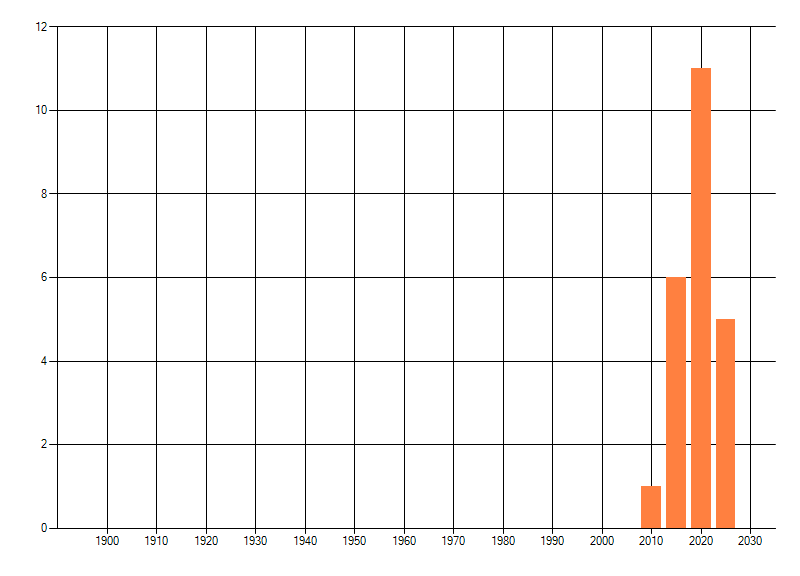 Het aantal atlasblokken (5x5 km) waarin de soort is gemeld binnen een periode van vijf jaar (vanaf 1980) of twintig jaar. Niet gecorrigeerd voor waarnemersinspanning en het aantal doorgegeven waarnemingen kan sterk variëren per periode, dus een trend in verspreiding kan hier niet direct uit worden afgelezen. Het opgegeven jaartal is het eerste jaar van de periode. Bron: gevalideerde waarnemingen uit de NDFF.
