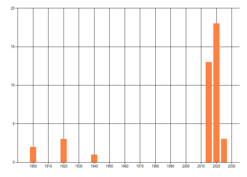 Het aantal atlasblokken (5x5 km) waarin de soort is gemeld binnen een periode van vijf jaar (vanaf 1980) of twintig jaar. Niet gecorrigeerd voor waarnemersinspanning en het aantal doorgegeven waarnemingen kan sterk variëren per periode, dus een trend in verspreiding kan hier niet direct uit worden afgelezen. Het opgegeven jaartal is het eerste jaar van de periode. Bron: gevalideerde waarnemingen uit de NDFF.