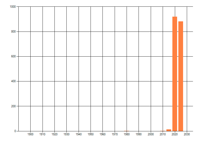 Het aantal atlasblokken (5x5 km) waarin de soort is gemeld binnen een periode van vijf jaar (vanaf 1980) of twintig jaar. Niet gecorrigeerd voor waarnemersinspanning en het aantal doorgegeven waarnemingen kan sterk variëren per periode, dus een trend in verspreiding kan hier niet direct uit worden afgelezen. Het opgegeven jaartal is het eerste jaar van de periode. Bron: gevalideerde waarnemingen uit de NDFF.