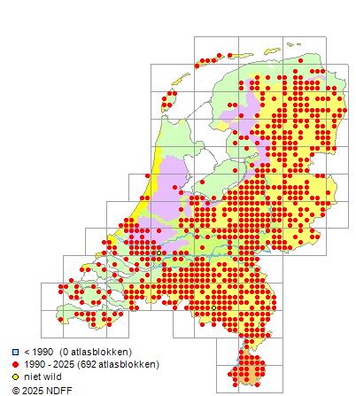 Bron: FLORON - Gemodelleerd op basis van waarnemingen uit de NDFF voor de periode 2000-2021.
