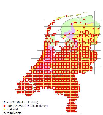 Bron: FLORON - Gemodelleerd op basis van waarnemingen uit de NDFF voor de periode 2000-2021.