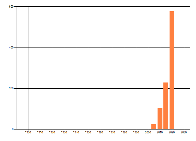 Het aantal atlasblokken (5x5 km) waarin de soort is gemeld binnen een periode van vijf jaar (vanaf 1980) of twintig jaar. Niet gecorrigeerd voor waarnemersinspanning en het aantal doorgegeven waarnemingen kan sterk variëren per periode, dus een trend in verspreiding kan hier niet direct uit worden afgelezen. Het opgegeven jaartal is het eerste jaar van de periode. Bron: gevalideerde waarnemingen uit de NDFF.