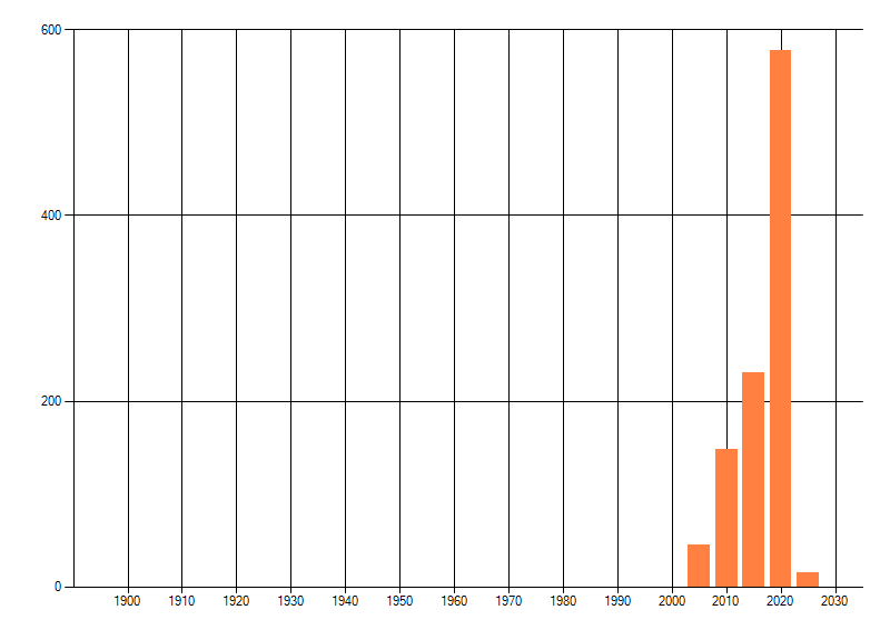 Het aantal atlasblokken (5x5 km) waarin de soort is gemeld binnen een periode van vijf jaar (vanaf 1980) of twintig jaar. Niet gecorrigeerd voor waarnemersinspanning en het aantal doorgegeven waarnemingen kan sterk variëren per periode, dus een trend in verspreiding kan hier niet direct uit worden afgelezen. Het opgegeven jaartal is het eerste jaar van de periode. Bron: gevalideerde waarnemingen uit de NDFF.