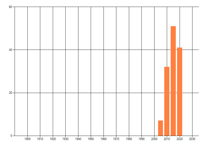 Het aantal atlasblokken (5x5 km) waarin de soort is gemeld binnen een periode van vijf jaar (vanaf 1980) of twintig jaar. Niet gecorrigeerd voor waarnemersinspanning en het aantal doorgegeven waarnemingen kan sterk variëren per periode, dus een trend in verspreiding kan hier niet direct uit worden afgelezen. Het opgegeven jaartal is het eerste jaar van de periode. Bron: gevalideerde waarnemingen uit de NDFF.