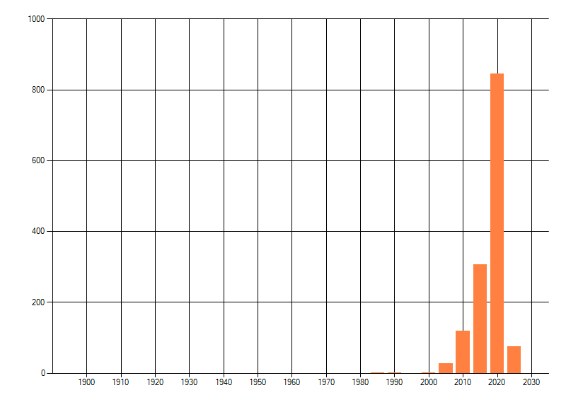 Het aantal atlasblokken (5x5 km) waarin de soort is gemeld binnen een periode van vijf jaar (vanaf 1980) of twintig jaar. Niet gecorrigeerd voor waarnemersinspanning en het aantal doorgegeven waarnemingen kan sterk variëren per periode, dus een trend in verspreiding kan hier niet direct uit worden afgelezen. Het opgegeven jaartal is het eerste jaar van de periode. Bron: gevalideerde waarnemingen uit de NDFF.