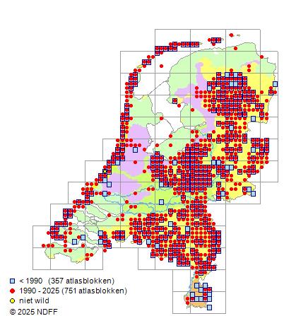 Bron: FLORON - Gemodelleerd op basis van waarnemingen uit de NDFF voor de periode 2000-2021.