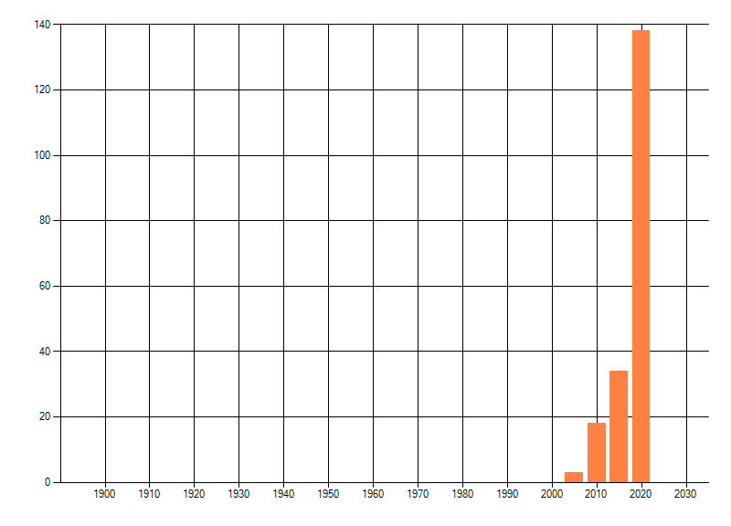 Het aantal atlasblokken (5x5 km) waarin de soort is gemeld binnen een periode van vijf jaar (vanaf 1980) of twintig jaar. Niet gecorrigeerd voor waarnemersinspanning en het aantal doorgegeven waarnemingen kan sterk variëren per periode, dus een trend in verspreiding kan hier niet direct uit worden afgelezen. Het opgegeven jaartal is het eerste jaar van de periode. Bron: gevalideerde waarnemingen uit de NDFF.