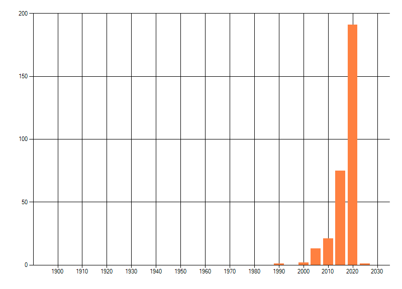 Het aantal atlasblokken (5x5 km) waarin de soort is gemeld binnen een periode van vijf jaar (vanaf 1980) of twintig jaar. Niet gecorrigeerd voor waarnemersinspanning en het aantal doorgegeven waarnemingen kan sterk variëren per periode, dus een trend in verspreiding kan hier niet direct uit worden afgelezen. Het opgegeven jaartal is het eerste jaar van de periode. Bron: gevalideerde waarnemingen uit de NDFF.