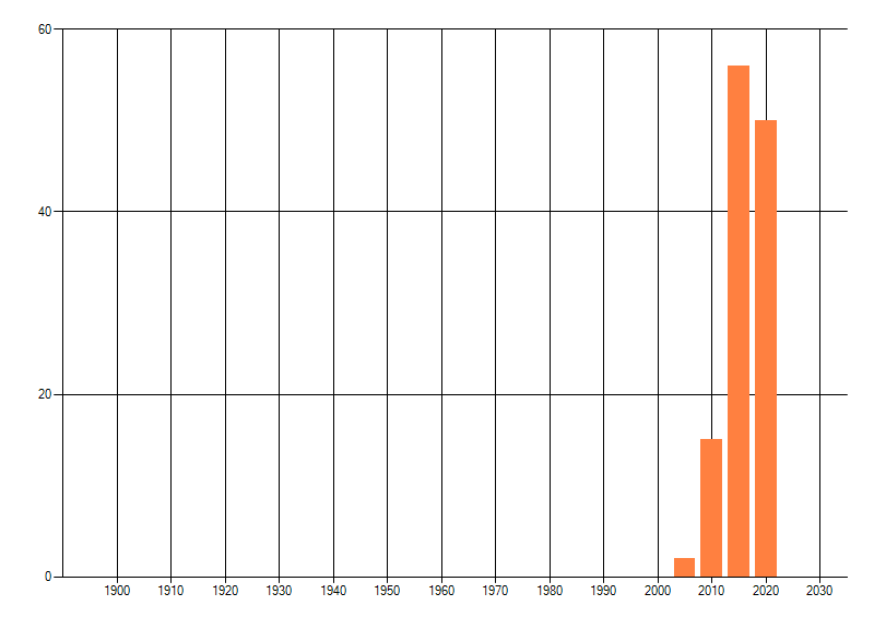 Het aantal atlasblokken (5x5 km) waarin de soort is gemeld binnen een periode van vijf jaar (vanaf 1980) of twintig jaar. Niet gecorrigeerd voor waarnemersinspanning en het aantal doorgegeven waarnemingen kan sterk variëren per periode, dus een trend in verspreiding kan hier niet direct uit worden afgelezen. Het opgegeven jaartal is het eerste jaar van de periode. Bron: gevalideerde waarnemingen uit de NDFF.