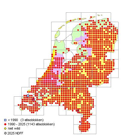Bron: FLORON - Gemodelleerd op basis van waarnemingen uit de NDFF voor de periode 2000-2021.