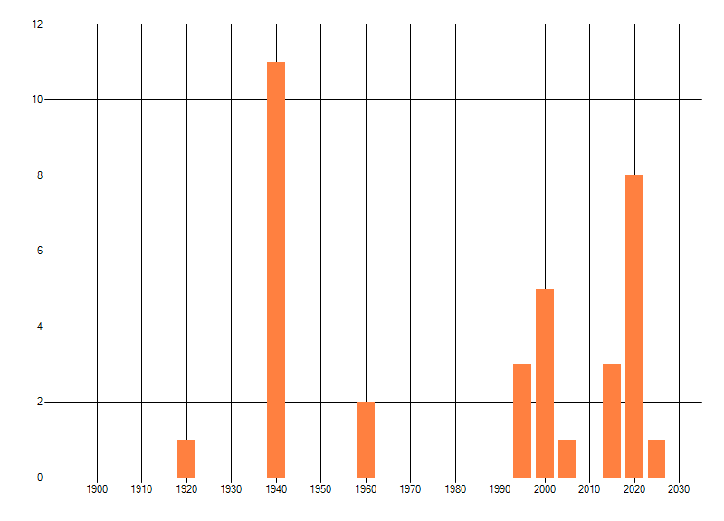 Het aantal atlasblokken (5x5 km) waarin de soort is gemeld binnen een periode van vijf jaar (vanaf 1980) of twintig jaar. Niet gecorrigeerd voor waarnemersinspanning en het aantal doorgegeven waarnemingen kan sterk variëren per periode, dus een trend in verspreiding kan hier niet direct uit worden afgelezen. Het opgegeven jaartal is het eerste jaar van de periode. Bron: gevalideerde waarnemingen uit de NDFF.