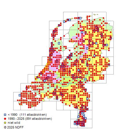 Bron: FLORON - Gemodelleerd op basis van waarnemingen uit de NDFF voor de periode 2000-2021.
