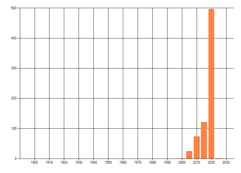 Het aantal atlasblokken (5x5 km) waarin de soort is gemeld binnen een periode van vijf jaar (vanaf 1980) of twintig jaar. Niet gecorrigeerd voor waarnemersinspanning en het aantal doorgegeven waarnemingen kan sterk variëren per periode, dus een trend in verspreiding kan hier niet direct uit worden afgelezen. Het opgegeven jaartal is het eerste jaar van de periode. Bron: gevalideerde waarnemingen uit de NDFF.