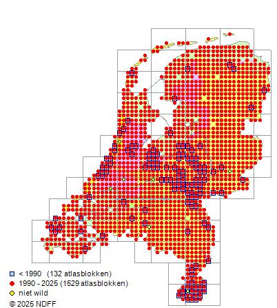 Bron: FLORON - Gemodelleerd op basis van waarnemingen uit de NDFF voor de periode 2000-2021.