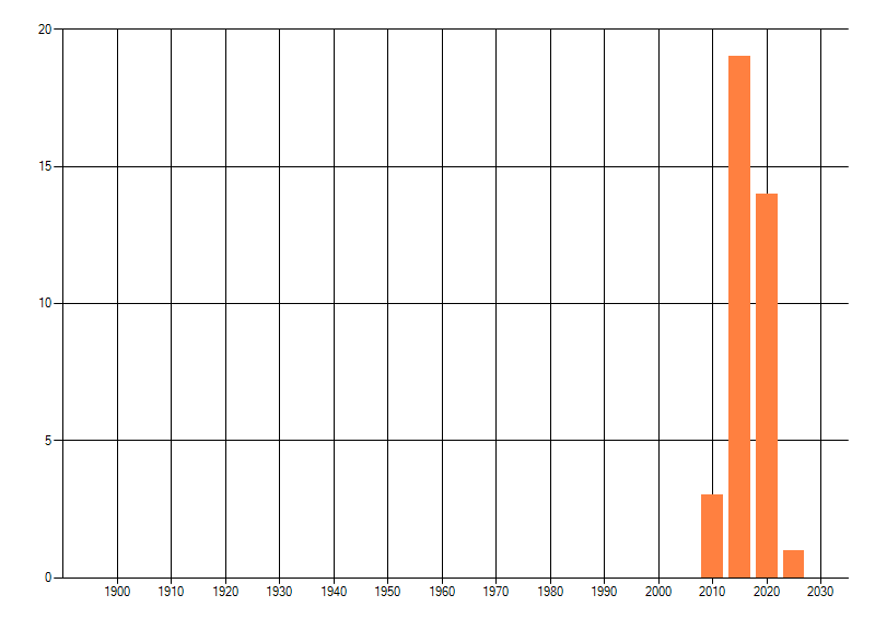 Het aantal atlasblokken (5x5 km) waarin de soort is gemeld binnen een periode van vijf jaar (vanaf 1980) of twintig jaar. Niet gecorrigeerd voor waarnemersinspanning en het aantal doorgegeven waarnemingen kan sterk variëren per periode, dus een trend in verspreiding kan hier niet direct uit worden afgelezen. Het opgegeven jaartal is het eerste jaar van de periode. Bron: gevalideerde waarnemingen uit de NDFF.