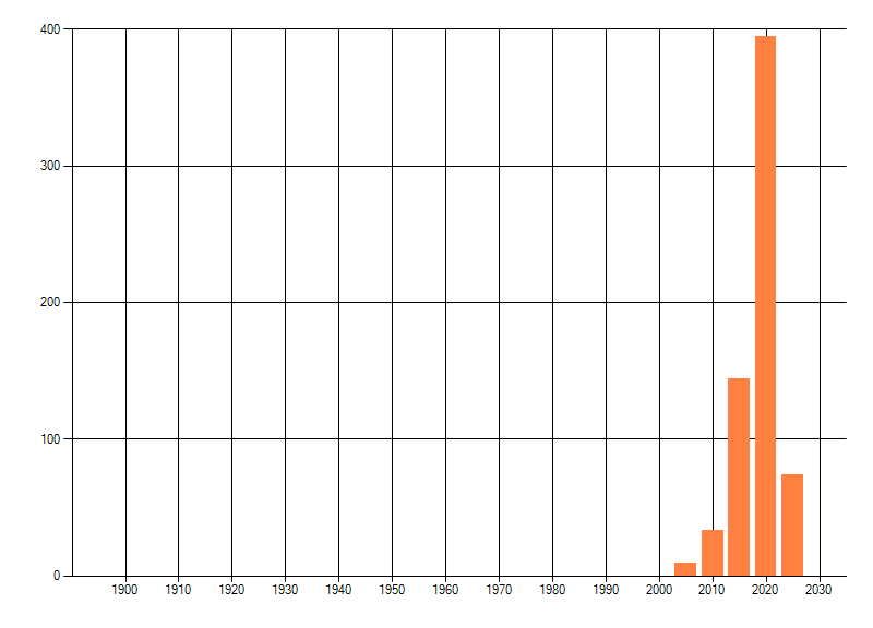 Het aantal atlasblokken (5x5 km) waarin de soort is gemeld binnen een periode van vijf jaar (vanaf 1980) of twintig jaar. Niet gecorrigeerd voor waarnemersinspanning en het aantal doorgegeven waarnemingen kan sterk variëren per periode, dus een trend in verspreiding kan hier niet direct uit worden afgelezen. Het opgegeven jaartal is het eerste jaar van de periode. Bron: gevalideerde waarnemingen uit de NDFF.