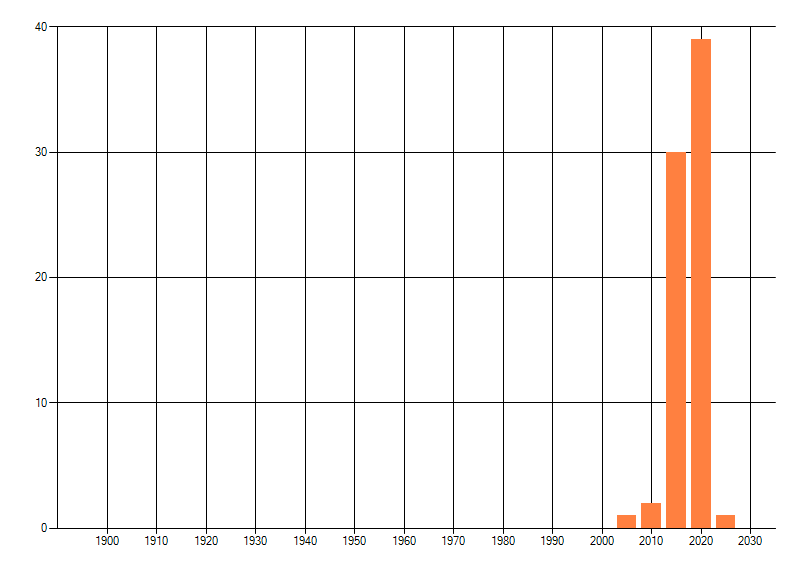 Het aantal atlasblokken (5x5 km) waarin de soort is gemeld binnen een periode van vijf jaar (vanaf 1980) of twintig jaar. Niet gecorrigeerd voor waarnemersinspanning en het aantal doorgegeven waarnemingen kan sterk variëren per periode, dus een trend in verspreiding kan hier niet direct uit worden afgelezen. Het opgegeven jaartal is het eerste jaar van de periode. Bron: gevalideerde waarnemingen uit de NDFF.