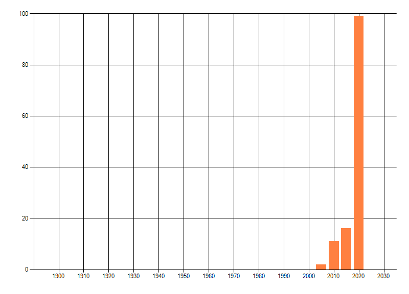 Het aantal atlasblokken (5x5 km) waarin de soort is gemeld binnen een periode van vijf jaar (vanaf 1980) of twintig jaar. Niet gecorrigeerd voor waarnemersinspanning en het aantal doorgegeven waarnemingen kan sterk variëren per periode, dus een trend in verspreiding kan hier niet direct uit worden afgelezen. Het opgegeven jaartal is het eerste jaar van de periode. Bron: gevalideerde waarnemingen uit de NDFF.