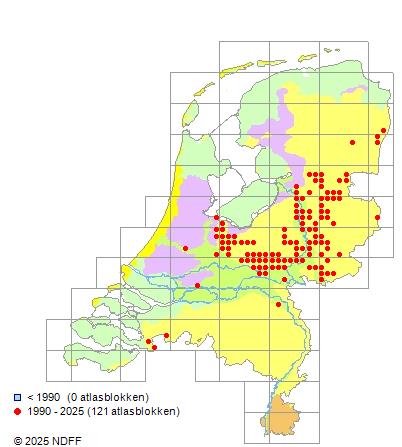 Bron: FLORON - Gemodelleerd op basis van waarnemingen uit de NDFF voor de periode 2000-2021.