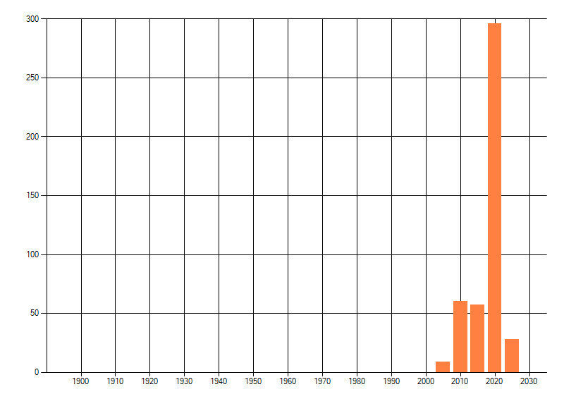 Het aantal atlasblokken (5x5 km) waarin de soort is gemeld binnen een periode van vijf jaar (vanaf 1980) of twintig jaar. Niet gecorrigeerd voor waarnemersinspanning en het aantal doorgegeven waarnemingen kan sterk variëren per periode, dus een trend in verspreiding kan hier niet direct uit worden afgelezen. Het opgegeven jaartal is het eerste jaar van de periode. Bron: gevalideerde waarnemingen uit de NDFF.