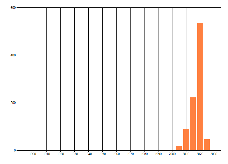 Het aantal atlasblokken (5x5 km) waarin de soort is gemeld binnen een periode van vijf jaar (vanaf 1980) of twintig jaar. Niet gecorrigeerd voor waarnemersinspanning en het aantal doorgegeven waarnemingen kan sterk variëren per periode, dus een trend in verspreiding kan hier niet direct uit worden afgelezen. Het opgegeven jaartal is het eerste jaar van de periode. Bron: gevalideerde waarnemingen uit de NDFF.