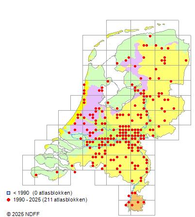 Bron: FLORON - Gemodelleerd op basis van waarnemingen uit de NDFF voor de periode 2000-2021.