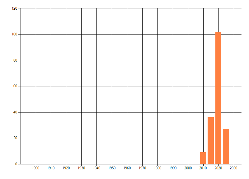 Het aantal atlasblokken (5x5 km) waarin de soort is gemeld binnen een periode van vijf jaar (vanaf 1980) of twintig jaar. Niet gecorrigeerd voor waarnemersinspanning en het aantal doorgegeven waarnemingen kan sterk variëren per periode, dus een trend in verspreiding kan hier niet direct uit worden afgelezen. Het opgegeven jaartal is het eerste jaar van de periode. Bron: gevalideerde waarnemingen uit de NDFF.