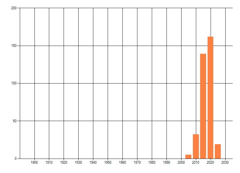Het aantal atlasblokken (5x5 km) waarin de soort is gemeld binnen een periode van vijf jaar (vanaf 1980) of twintig jaar. Niet gecorrigeerd voor waarnemersinspanning en het aantal doorgegeven waarnemingen kan sterk variëren per periode, dus een trend in verspreiding kan hier niet direct uit worden afgelezen. Het opgegeven jaartal is het eerste jaar van de periode. Bron: gevalideerde waarnemingen uit de NDFF.