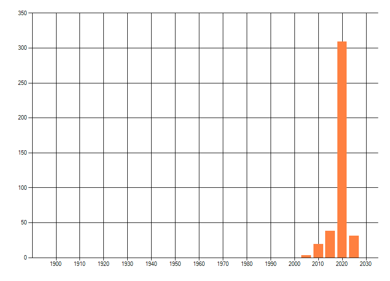 Het aantal atlasblokken (5x5 km) waarin de soort is gemeld binnen een periode van vijf jaar (vanaf 1980) of twintig jaar. Niet gecorrigeerd voor waarnemersinspanning en het aantal doorgegeven waarnemingen kan sterk variëren per periode, dus een trend in verspreiding kan hier niet direct uit worden afgelezen. Het opgegeven jaartal is het eerste jaar van de periode. Bron: gevalideerde waarnemingen uit de NDFF.