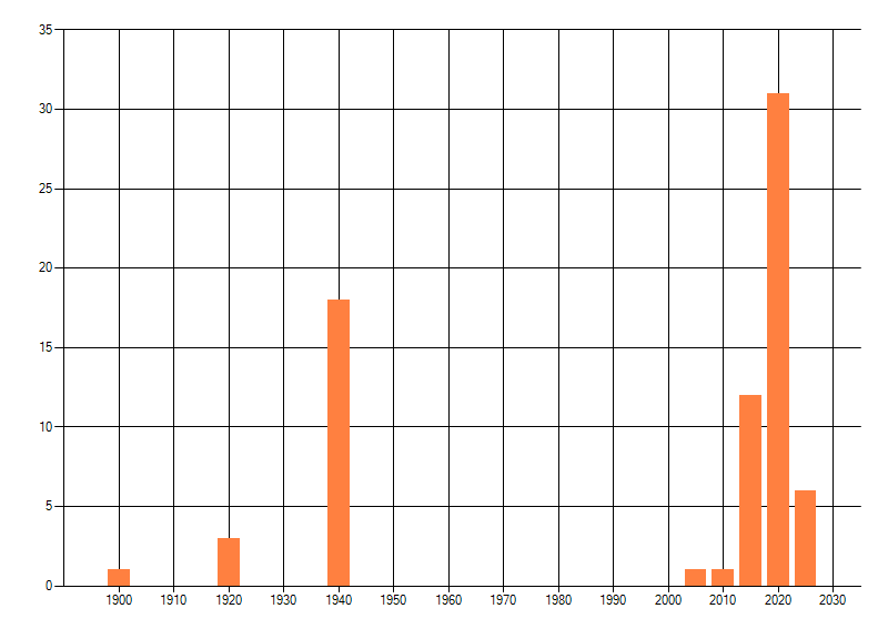 Het aantal atlasblokken (5x5 km) waarin de soort is gemeld binnen een periode van vijf jaar (vanaf 1980) of twintig jaar. Niet gecorrigeerd voor waarnemersinspanning en het aantal doorgegeven waarnemingen kan sterk variëren per periode, dus een trend in verspreiding kan hier niet direct uit worden afgelezen. Het opgegeven jaartal is het eerste jaar van de periode. Bron: gevalideerde waarnemingen uit de NDFF.