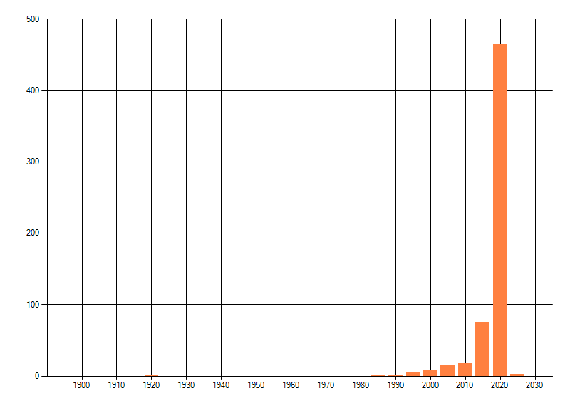 Het aantal atlasblokken (5x5 km) waarin de soort is gemeld binnen een periode van vijf jaar (vanaf 1980) of twintig jaar. Niet gecorrigeerd voor waarnemersinspanning en het aantal doorgegeven waarnemingen kan sterk variëren per periode, dus een trend in verspreiding kan hier niet direct uit worden afgelezen. Het opgegeven jaartal is het eerste jaar van de periode. Bron: gevalideerde waarnemingen uit de NDFF.