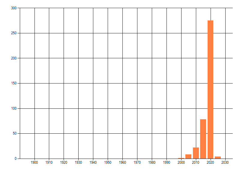 Het aantal atlasblokken (5x5 km) waarin de soort is gemeld binnen een periode van vijf jaar (vanaf 1980) of twintig jaar. Niet gecorrigeerd voor waarnemersinspanning en het aantal doorgegeven waarnemingen kan sterk variëren per periode, dus een trend in verspreiding kan hier niet direct uit worden afgelezen. Het opgegeven jaartal is het eerste jaar van de periode. Bron: gevalideerde waarnemingen uit de NDFF.