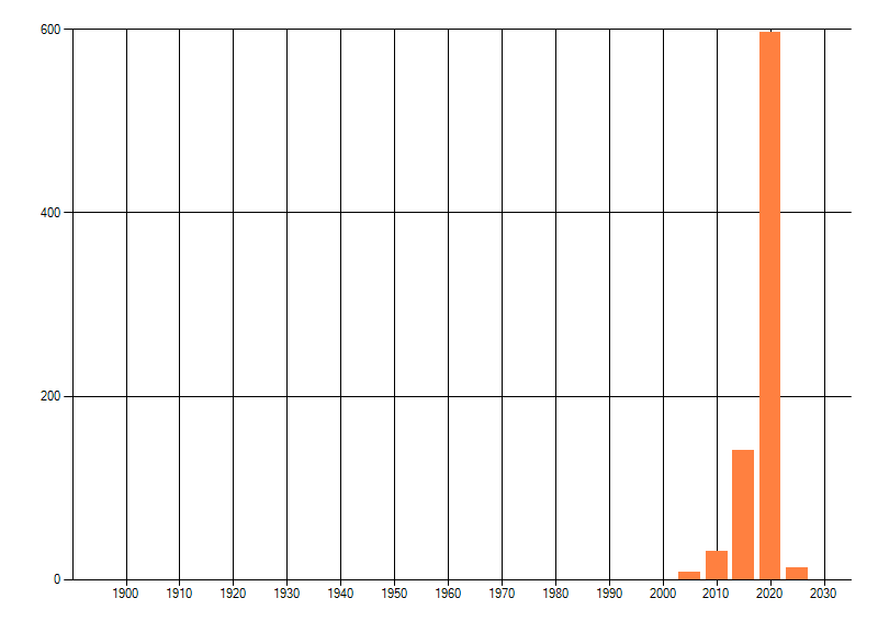 Het aantal atlasblokken (5x5 km) waarin de soort is gemeld binnen een periode van vijf jaar (vanaf 1980) of twintig jaar. Niet gecorrigeerd voor waarnemersinspanning en het aantal doorgegeven waarnemingen kan sterk variëren per periode, dus een trend in verspreiding kan hier niet direct uit worden afgelezen. Het opgegeven jaartal is het eerste jaar van de periode. Bron: gevalideerde waarnemingen uit de NDFF.
