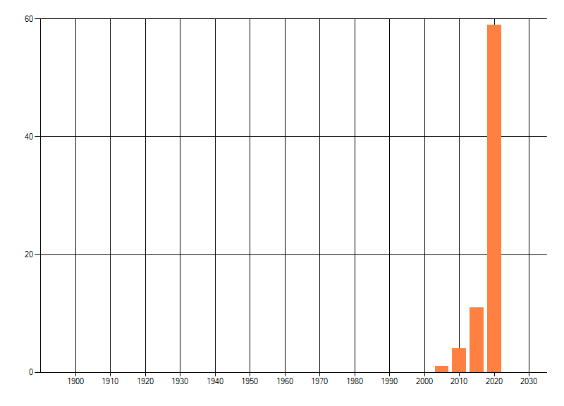 Het aantal atlasblokken (5x5 km) waarin de soort is gemeld binnen een periode van vijf jaar (vanaf 1980) of twintig jaar. Niet gecorrigeerd voor waarnemersinspanning en het aantal doorgegeven waarnemingen kan sterk variëren per periode, dus een trend in verspreiding kan hier niet direct uit worden afgelezen. Het opgegeven jaartal is het eerste jaar van de periode. Bron: gevalideerde waarnemingen uit de NDFF.