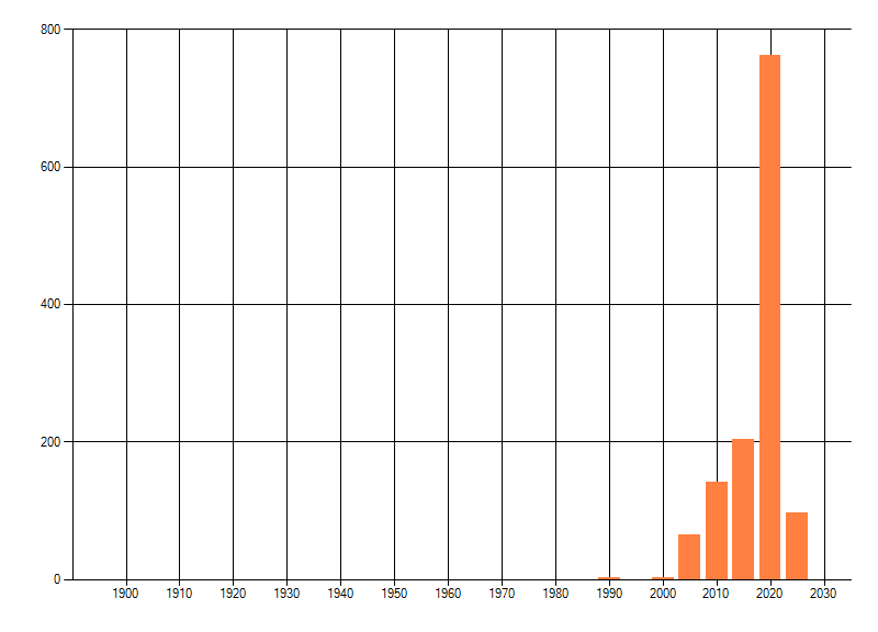 Het aantal atlasblokken (5x5 km) waarin de soort is gemeld binnen een periode van vijf jaar (vanaf 1980) of twintig jaar. Niet gecorrigeerd voor waarnemersinspanning en het aantal doorgegeven waarnemingen kan sterk variëren per periode, dus een trend in verspreiding kan hier niet direct uit worden afgelezen. Het opgegeven jaartal is het eerste jaar van de periode. Bron: gevalideerde waarnemingen uit de NDFF.