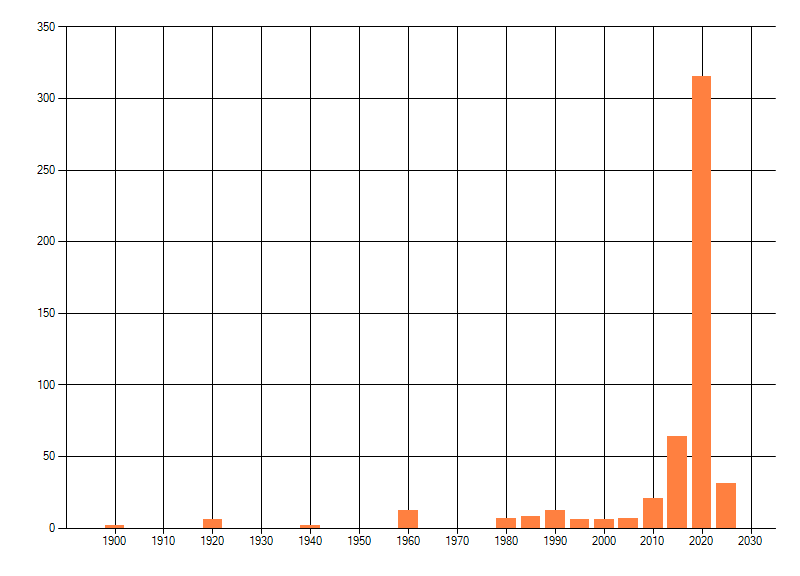 Het aantal atlasblokken (5x5 km) waarin de soort is gemeld binnen een periode van vijf jaar (vanaf 1980) of twintig jaar. Niet gecorrigeerd voor waarnemersinspanning en het aantal doorgegeven waarnemingen kan sterk variëren per periode, dus een trend in verspreiding kan hier niet direct uit worden afgelezen. Het opgegeven jaartal is het eerste jaar van de periode. Bron: gevalideerde waarnemingen uit de NDFF.
