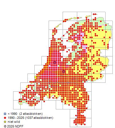 Bron: FLORON - Gemodelleerd op basis van waarnemingen uit de NDFF voor de periode 2000-2021.