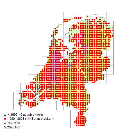 Bron: FLORON - Gemodelleerd op basis van waarnemingen uit de NDFF voor de periode 2000-2021.