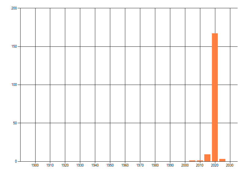 Het aantal atlasblokken (5x5 km) waarin de soort is gemeld binnen een periode van vijf jaar (vanaf 1980) of twintig jaar. Niet gecorrigeerd voor waarnemersinspanning en het aantal doorgegeven waarnemingen kan sterk variëren per periode, dus een trend in verspreiding kan hier niet direct uit worden afgelezen. Het opgegeven jaartal is het eerste jaar van de periode. Bron: gevalideerde waarnemingen uit de NDFF.