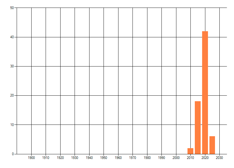 Het aantal atlasblokken (5x5 km) waarin de soort is gemeld binnen een periode van vijf jaar (vanaf 1980) of twintig jaar. Niet gecorrigeerd voor waarnemersinspanning en het aantal doorgegeven waarnemingen kan sterk variëren per periode, dus een trend in verspreiding kan hier niet direct uit worden afgelezen. Het opgegeven jaartal is het eerste jaar van de periode. Bron: gevalideerde waarnemingen uit de NDFF.