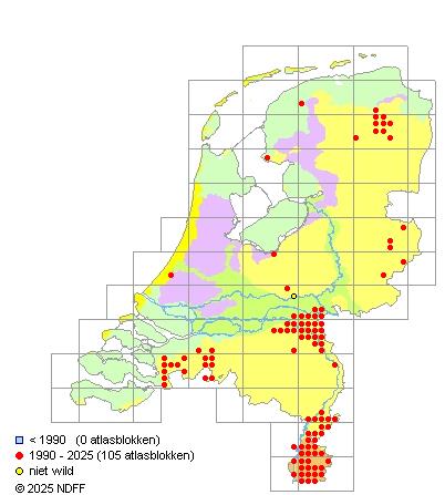 Bron: FLORON - Gemodelleerd op basis van waarnemingen uit de NDFF voor de periode 2000-2021.
