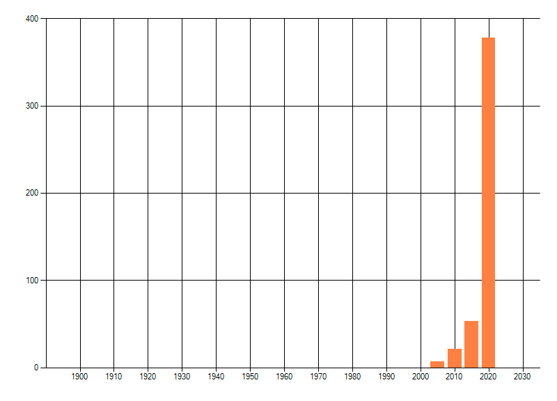 Het aantal atlasblokken (5x5 km) waarin de soort is gemeld binnen een periode van vijf jaar (vanaf 1980) of twintig jaar. Niet gecorrigeerd voor waarnemersinspanning en het aantal doorgegeven waarnemingen kan sterk variëren per periode, dus een trend in verspreiding kan hier niet direct uit worden afgelezen. Het opgegeven jaartal is het eerste jaar van de periode. Bron: gevalideerde waarnemingen uit de NDFF.