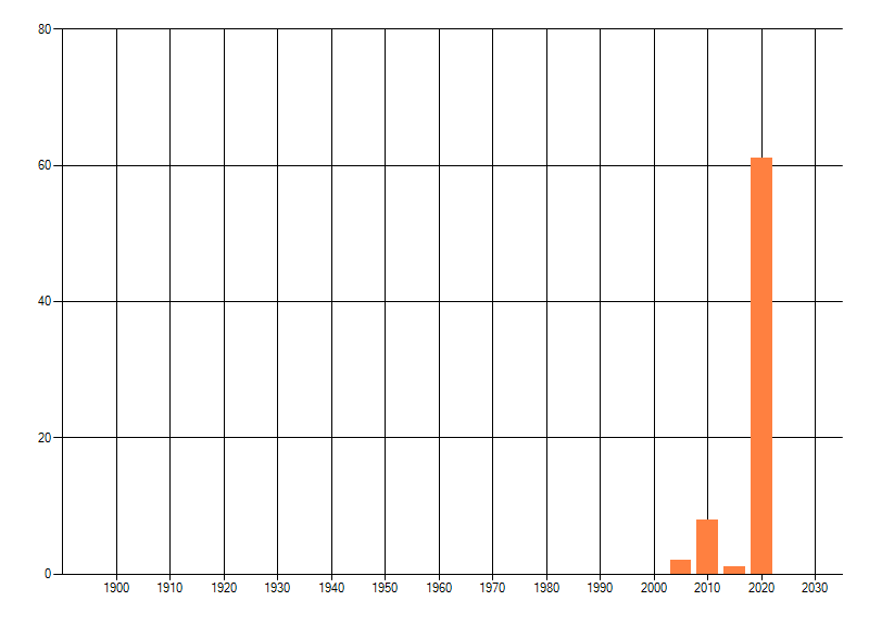 Het aantal atlasblokken (5x5 km) waarin de soort is gemeld binnen een periode van vijf jaar (vanaf 1980) of twintig jaar. Niet gecorrigeerd voor waarnemersinspanning en het aantal doorgegeven waarnemingen kan sterk variëren per periode, dus een trend in verspreiding kan hier niet direct uit worden afgelezen. Het opgegeven jaartal is het eerste jaar van de periode. Bron: gevalideerde waarnemingen uit de NDFF.