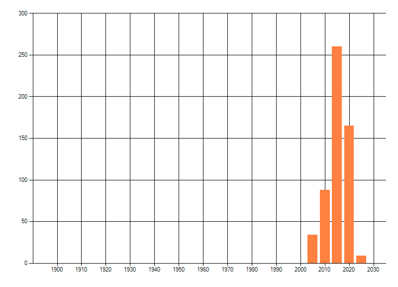 Het aantal atlasblokken (5x5 km) waarin de soort is gemeld binnen een periode van vijf jaar (vanaf 1980) of twintig jaar. Niet gecorrigeerd voor waarnemersinspanning en het aantal doorgegeven waarnemingen kan sterk variëren per periode, dus een trend in verspreiding kan hier niet direct uit worden afgelezen. Het opgegeven jaartal is het eerste jaar van de periode. Bron: gevalideerde waarnemingen uit de NDFF.