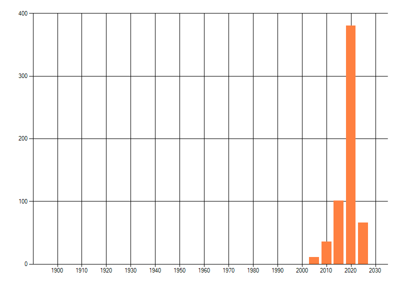 Het aantal atlasblokken (5x5 km) waarin de soort is gemeld binnen een periode van vijf jaar (vanaf 1980) of twintig jaar. Niet gecorrigeerd voor waarnemersinspanning en het aantal doorgegeven waarnemingen kan sterk variëren per periode, dus een trend in verspreiding kan hier niet direct uit worden afgelezen. Het opgegeven jaartal is het eerste jaar van de periode. Bron: gevalideerde waarnemingen uit de NDFF.