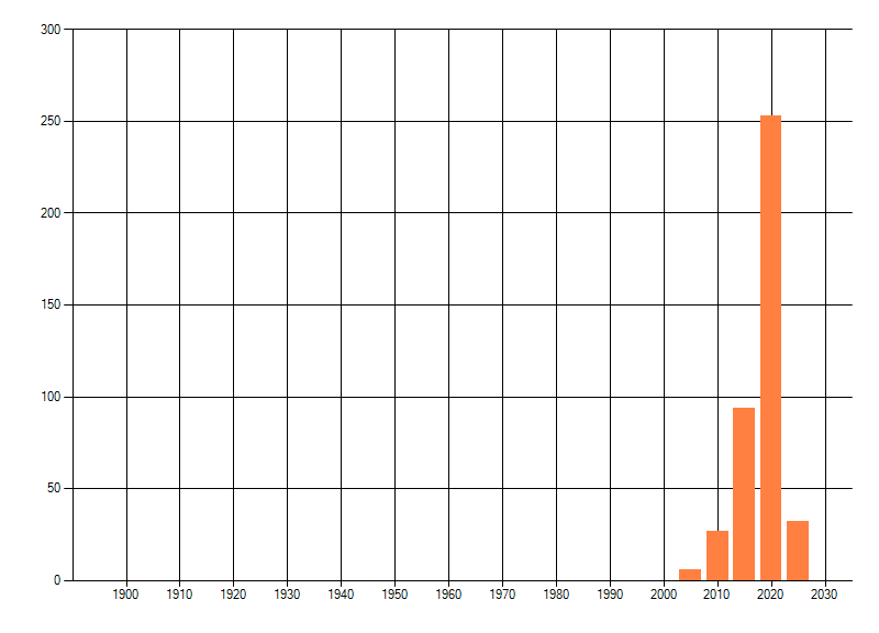 Het aantal atlasblokken (5x5 km) waarin de soort is gemeld binnen een periode van vijf jaar (vanaf 1980) of twintig jaar. Niet gecorrigeerd voor waarnemersinspanning en het aantal doorgegeven waarnemingen kan sterk variëren per periode, dus een trend in verspreiding kan hier niet direct uit worden afgelezen. Het opgegeven jaartal is het eerste jaar van de periode. Bron: gevalideerde waarnemingen uit de NDFF.