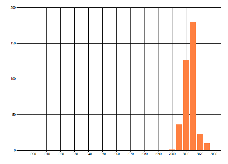 Het aantal atlasblokken (5x5 km) waarin de soort is gemeld binnen een periode van vijf jaar (vanaf 1980) of twintig jaar. Niet gecorrigeerd voor waarnemersinspanning en het aantal doorgegeven waarnemingen kan sterk variëren per periode, dus een trend in verspreiding kan hier niet direct uit worden afgelezen. Het opgegeven jaartal is het eerste jaar van de periode. Bron: gevalideerde waarnemingen uit de NDFF.