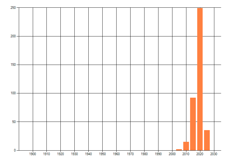Het aantal atlasblokken (5x5 km) waarin de soort is gemeld binnen een periode van vijf jaar (vanaf 1980) of twintig jaar. Niet gecorrigeerd voor waarnemersinspanning en het aantal doorgegeven waarnemingen kan sterk variëren per periode, dus een trend in verspreiding kan hier niet direct uit worden afgelezen. Het opgegeven jaartal is het eerste jaar van de periode. Bron: gevalideerde waarnemingen uit de NDFF.